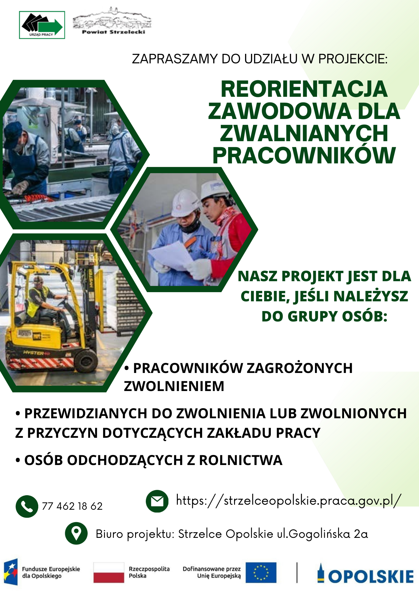 - przez Partnera wiodącego: Województwo Opolskie - Wojewódzki Urząd Pracy w Opolu szczegółowe informacje na stronie https://wupopole.praca.gov.pl/reorientacja-zawodowa-dla-zwalnianych-pracowników